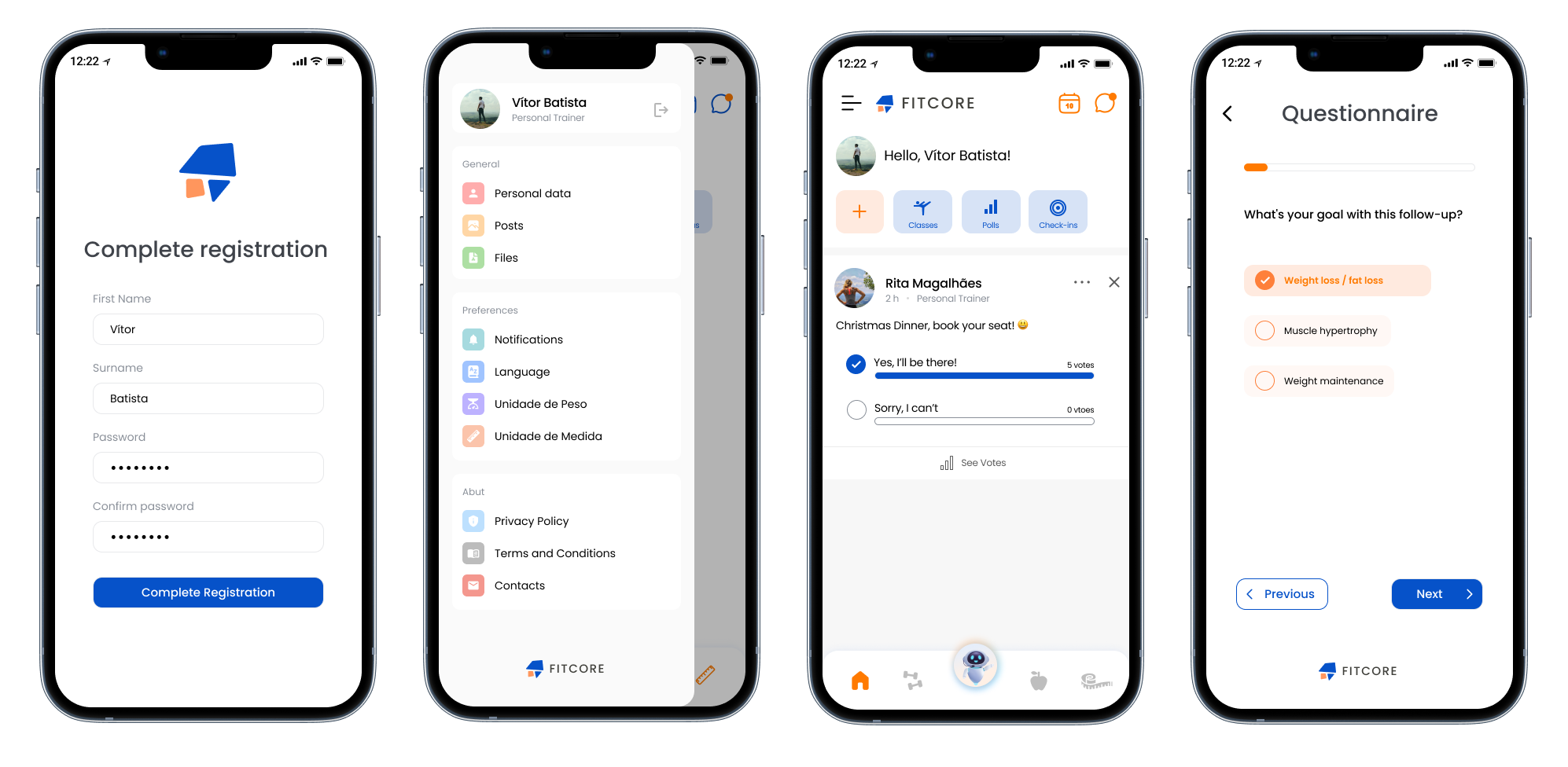 Fitcore has developed a mobile app available for download on Android and iOS for both professionals and respective clients, where each athlete's entire fitness plan is centralised.